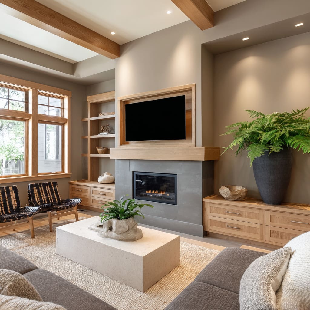 These are the details that invite quiet observation without fanfare. In a well-composed modern craftsman style living room, this stacking of textures isn’t flashy, but it keeps the eye moving—creating depth without excess, and character without clutter.