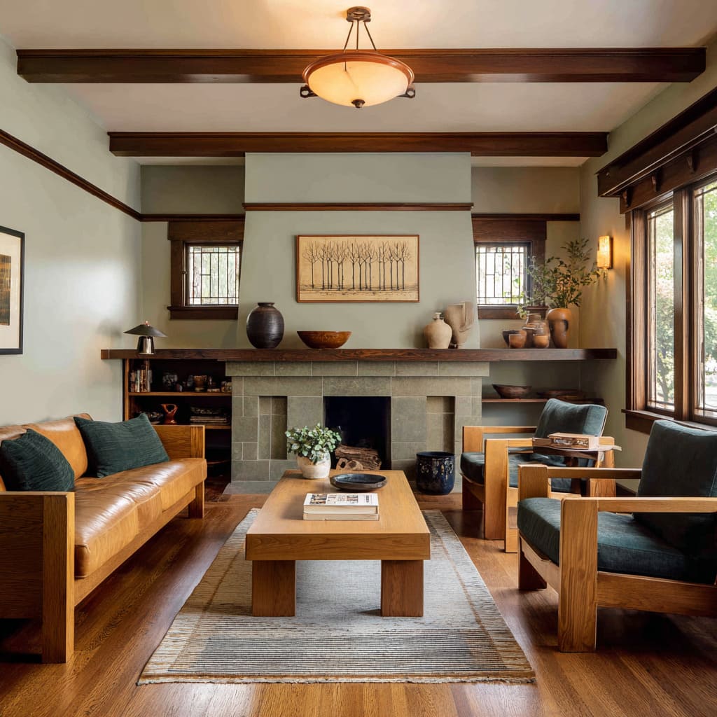 What makes today’s craftsman style living room ideas feel current without losing their roots is how outside influences are absorbed without overpowering the original character. There’s a quiet blend happening—subtle nods to Japanese minimalism, Scandinavian lightness, and Mid-Century sparkle—but always seen through the Craftsman lens of grounded materials and human scale.