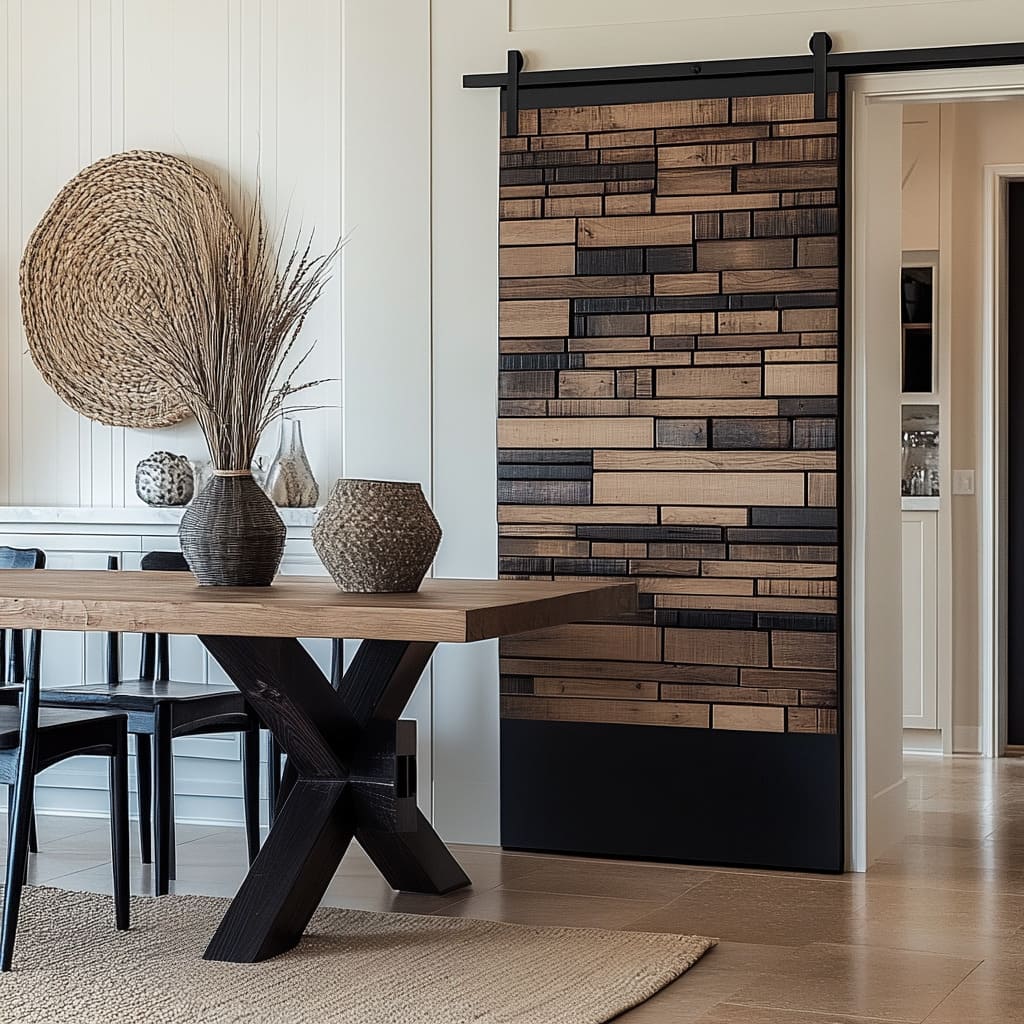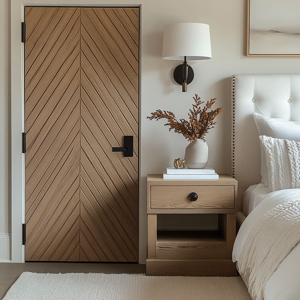 Ya sea mediante un motivo en X suave, un campo en espiga, una secuencia de franjas verticales en varios tonos o un mosaico por bloques, cada patrón de puerta refleja un nivel de lectura visual que se ajusta al ambiente de la vivienda. Dentro de este lenguaje en transformación, las puertas interiores de estilo farmhouse reúnen vetas calmadas, contrastes contenidos, patrones refinados y una naturalidad serena en la decoración para crear interiores con carácter y bien asentados, sin recurrir a códigos rústicos pesados.